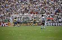 Argentina playing against Brazil in the 1983 World Cup final, where they lost 1–0