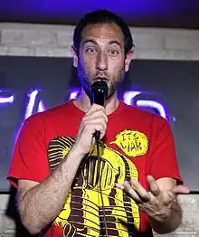 Shaffir's first and only comedy performance on stage before he moved to Los Angeles took place in his early twenties at an open mic night at a "sports comedy place in Northern Virginia".[2] Following his graduation from university, Shaffir moved to Los Angeles to improve his chances of success as a stand-up comedian.[7] He took up work answering the phones at The Comedy Store, which led to positions in the cover booth and "the door", until owner Mitzi Shore made him a paid regular, four-and-a-half years later.[2] His early influences in comedy include watching showcase comedy shows on television and comedians on The Tonight Show with Johnny Carson.[9] He cites Bill Burr as his favorite living comedian.[10] He became bicoastal, living in both Los Angeles and New York City in 2012, and became a full-time New York resident in 2015.