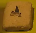 Odontaspis | O. aculeatus | Ouachita River northwest of Malvern, Arkansas.[6] | 2 lateral teeth (AMNH 20137 & 20138).[6] | A sand shark. | |