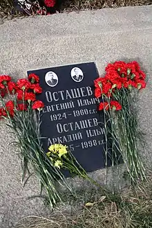 Ostashev died on 12 July 1998, in Moscow. Personal will and testament Arkady Ilyich Ostashev was cremated for burial in the grave of the elder brother Yevgeny. In December 1998, after obtaining the relevant approvals and permits from the leadership of Kazakhstan dust Ostashev was moved by his wife and son to Baikonur (city) and buried in the grave of his older brother Yevgeny, who died on 24 October 1960 41 site the Baikonur cosmodrome in preparation for the launch of Intercontinental ballistic missile R-16.