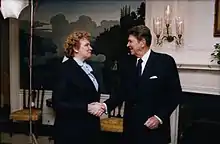 In 1986 and 1990, she won the Republican primary for governor. In 1986, her campaign used the slogan "Let's Just Call Her Governor", owing to her hard-to-read surname.[6] In the election, she lost to Democrat Steve Cowper 47.3-42.6. In 1990, her running mate Jack Coghill defected to the third party candidate Walter J. Hickel. Sturgulewski went on to come in third place behind former governor Wally Hickel and Democrat Tony Knowles. There was opposition within the Republican party to her abortion rights and development positions.[7] By 2016, she had registered nonpartisan, as the Republican party had moved, "too far to the right."[8] In 2019, Sturgulewski co-chaired a committee that attempted to recall Republican Governor Mike Dunleavy.[9]