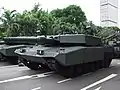 In December 2008, the Army phased out the AMX-13SM1 and replaced it with the newly acquired Leopard 2A4 main battle tank,[14] which was then further upgraded to the Leopard 2SG model.[3]
