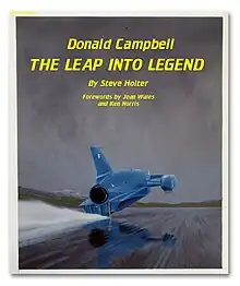 About that time his interest in Land and Water Speed record breakers came to the fore. His first book jacket cover appeared on the cover of Power Boat Speed by Kevin Desmond which chronicled powerboating from 1896 onwards[5] One of his paintings appeared in the Italian version of Pilote Che Gente by Enzo Ferrari[6] and just before his death in 1988, Commendatore Ferrari presented Benjamins with a signed copy. In 1990, and with the full approval of Ken Norris, who designed the Bluebird car and boat in which Englishman, Donald Campbell broke many speed records, Benjamins set up Bluebird Publications to issue many of his record breaker prints.[7][8] Other book jackets followed. Leap into Legend by Steve Holter,[9] Race against the Odds again by Kevin Desmond.[10] and "The British Are Coming, British Record Breaking and the people that made it Happen" by Mike Varndell (.[11] Benjamins has also evoked historic aviation scenes.
