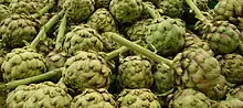 The globe artichoke (Cynara cardunculus var. scolymus /ˈsɪnərə kɑːrˈdʌnkjʊləs ˈskɒlɪməs/[1][2][3]),[4] also known by the names French artichoke and green artichoke in the U.S.,[5] is a variety of a species of thistle cultivated as food.