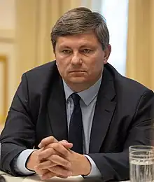 Artur Volodymyrovych Herasymov (Ukrainian: Артур Володимирович Герасимов; born on 23 August 1972), is a Ukrainian politician who is a member of the Verkhovna Rada since 27 November 2014. He was the leader of the then-Petro Poroshenko Bloc parliamentary faction from 2017 to 2019. Herasymov is currently the co-chairman of the European Solidarity faction in the Verkhovna Rada of the 9th convocation since 2019.[1][2]