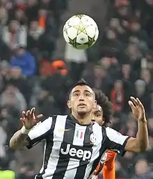 Arturo Erasmo Vidal Pardo (Spanish pronunciation: [aɾˈtuɾo eˈɾasmo βiˈðal ˈpaɾðo];[lower-alpha 1] born 22 May 1987) is a Chilean professional footballer who last played as a midfielder for Campeonato Brasileiro Série A club Athletico Paranaense and the Chile national team.[4] His displays during his time at Juventus led him to be nicknamed Il Guerriero ("The Warrior"), Rey Arturo ("King Arthur") and La Piranha by the Italian press due to his hard-tackling and aggressive, tenacious style of play.[5][6]