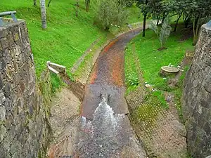 The Juan Amarillo, Arzobispo, or Salitre River,[1] is formed by various quebradas ("creeks") sourced at an altitude of 3,300 metres (10,800 ft) in the Eastern Hills of Bogotá. Main feeder creeks are Las Delicias, La Vieja, El Chicó, Los Molinos, Santa Bárbara, Delicias del Carmen, El Cóndor, El Cedro, San Cristóbal, La Cita and La Floresta.[2][3][4] The Juan Amarillo Basin covers the localities Usaquén, Chapinero and Santa Fe in its upper course and Suba, Barrios Unidos, Teusaquillo and Engativá in its lower drainage area. The Suba Hills (cerros de Suba) are located in the Juan Amarillo River basin. The total surface area of the Juan Amarillo basin is 12,892 hectares (31,860 acres).[5]