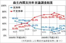 - ↑ "(4/26)内閣支持率32%、7ポイント上昇 日経世論調査". 日本経済新聞. 2009-04-26. Retrieved 2009-12-29.