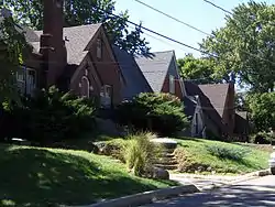 The houses generally follow the conventional Tudor Revival and Colonial Revival styles as well a local variation of the Tudor style called “Beaverdale Brick.”[2] There are both brick and frame structures that are 1½ and 2-stories and feature intersecting gables. A few of the houses are also constructed of limestone and of concrete block masonry. Some of the houses have a garage integrated into the houses design. Others were not built with garages and they were added at some point after World War II, and therefore do not contribute to the historic nature of the neighborhood. The more modern garages are also located behind the house and do not detract from the historic appearance of the neighborhood.[2] In general, the garages are front gable structures that were built to house one car. Most of the houses are modest in scale, which reflects their construction during the Great Depression, but there are a few examples of the high-style.
