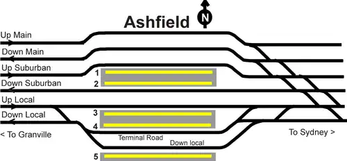 Ashfield railway station is located on the Main Suburban line, serving the suburb of Ashfield, in Sydney, Australia. It is served by Sydney Trains T2 Inner West & Leppington line services.