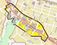 The listing included 55 contributing buildings and six contributing objects, as well as 26 non-contributing buildings and one non-contributing object.[3] Eleven buildings were already separately listed on the National Register. Buildings include: