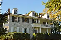 The Ashton-Hursh House is a historic home and outbuilding located at 204 Limekiln Road in Fairview Township, York County, Pennsylvania.[2] Built in stages between approximately 1764 and 1830, it is a 2+1⁄2-story, L-shaped, Federal style log, frame, and stone dwelling. Situated on a limestone foundation, the home also has a gable roof and three Greek Revival-style porticos. The frame outbuilding may date as early as 1734; it was renovated circa 1830.[3] The outbuilding is believed by historians to be York County's oldest occupied structure.