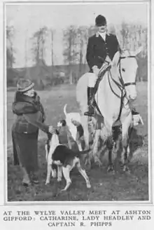 In 1930 and 1931 H. T. Guest was listed as resident at Ashton Gifford House.[85] The house was occupied from at least 1931 (until his death) by the Irish peer Lord Headley – Rowland Allanson-Winn, 5th Baron Headley.[86] Lord Headley is sometimes referred to as the first Muslim peer of Britain (a misnomer, as he was actually the second). He was President of the British Muslim Society, and died in 1935.[87] Lord Headley's widow (his third wife), Lady Catharine Headley (née Lovibond), continued living at Ashton Gifford House until 1940, when she shared the house with Greenways School.[88][89] Lady Headley opened the gardens to the public in aid of the Queen's Institute and district nursing under the National Gardens Scheme[90] Lord Headley and, after his death, Lady Headley hosted the local Wyle Valley foxhunt on several occasions.[91] The 1933 Wyle Valley Hunt Ball was held at Ashton Gifford House, and was covered by the society papers.[92]