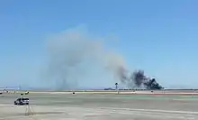 Eyewitnesses to the crash included the cockpit crew and many passengers on board United Airlines Flight 885, a Boeing 747-400 that was holding on Taxiway F, next to the runway.[72][73] Others saw it from the terminal and near the airport.[73] At least one person recorded it on video.[74][75] Writing on the Professional Pilots Rumour Network internet forum, the first officer of UA 885 described what he saw:[76][77][78][79]