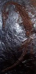 - 1 2 Rieppel, O.; Liu, J.; Bucher, H. (2000). "The first record of a thalattosaur reptile from the Late Triassic of southern China (Guizhou Province, PR China)". Journal of Vertebrate Paleontology. 20 (3): 507–514. doi:10.1671/0272-4634(2000)020[0507:TFROAT]2.0.CO;2. S2CID 140706921.