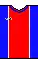 - Home: shirt with blue, white and red vertical stripes, blue shorts and blue socks.