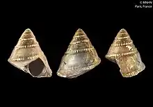 - ↑ Quin 1987. A revision of the Seguenziacea Verrill, 1884 (Gastropoda: Prosobranchia). II. The new genera Hadroconus, Rotellenzia, and Asthelys. Nautilus 10 I (2): 59-68