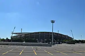 The Atatürk Olympic Stadium (Turkish: Atatürk Olimpiyat Stadyumu, pronounced [aˈtatyɾc]) is a stadium in Istanbul, Turkey. Located in the western district of Başakşehir, it is the largest-capacity stadium in the country. The stadium is named after Mustafa Kemal Atatürk, the founder and first President of the Republic of Turkey. Its construction began in 1999 and was completed in 2002. It was originally built for Turkey's bid for the 2008 Olympic Games that were ultimately awarded to Beijing, China. It cost about US$140 million.[3]