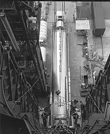The Atlas-Centaur was a United States expendable launch vehicle derived from the SM-65 Atlas D missile. The vehicle featured a Centaur upper stage, the first such stage to use high-performance liquid hydrogen as fuel. Launches were conducted from Launch Complex 36 at the Cape Canaveral Air Force Station (CCAFS) in Florida. After a strenuous flight test program, Atlas-Centaur went on to launch several crucial spaceflight missions for the United States, including Surveyor 1, Mariner 4, and Pioneer 10/11. The vehicle would be continuously developed and improved into the 1990s, with the last direct descendant being the highly successful Atlas II.