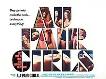 Au Pair Girls is a 1972 British sex comedy film directed by Val Guest.[1][2] It stars Gabrielle Drake, Astrid Frank, Me Me Lai and Nancie Wait. Part of the British 1970s softcore sex comedy genre, the film also includes appearances by mainstream actors Trevor Bannister, Richard O'Sullivan, John Le Mesurier, Ferdy Mayne, Geoffrey Bayldon and Johnny Briggs.