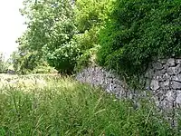 An artificial loch was situated within the policies, well stocked with fish. The Old Bank is the name given to the tree-covered hillside to the west, bordering the old deer park.[21] An area known as Kemp Law is associated with the site of a vitrified fort and the Badger Brae that lies nearby. The mid-19th century OS maps show a complex of out-buildings and a dwelling called Old Auchans, situated above the castle and with Parkthorn farm nearby; it had views of what is now the quarry. The Old Auchans property is now ruinous; it may have been the dwelling of the estate factors before New Auchans House, now demolished, was built.