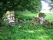 After the death of Lady Eglinton in 1780, Auchans housed workmen's families. Archibald, the 11th Earl of Eglinton lived here for a while at some stage.[1] The Dundonald cemetery houses the Auchans burial ground, next to that of Craighouse, Fairlie house and Shewalton House. John Dunlop Esq. of Whitmuir Hall near Selkirk has a memorial plaque, giving the fact that he was Factor to Lady Susanna Montgomery at Auchans and died in 1836, aged 61.[28] John Dunlop Esq. is quoted by William Aiton as having set up and recorded rainfall with a rain gauge at Auchans House in 1808-1809.[29]