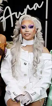 Aura Mayari is the stage name of Jay-R de Leon,[2] a Filipino-American drag performer most known for competing on the fifteenth season of RuPaul's Drag Race.[3]