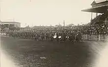 In contrast to the New South Wales tour, the cadets received a parade in Melbourne and a full page welcoming in The Argus.[30] However they faced a stern lack of support from Victorian football authorities, the cadets who had trained to play in the home of football, instead competed and lost in other sports including lacrosse at the Melbourne Cricket Ground. A rare exception was during the visit to Newport a local amateur team agreed to play an unsanctioned match and were completely shocked to have been soundly beaten by the visitors.[30]
