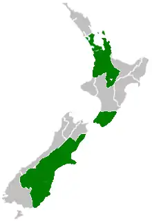 Australian rules football in New Zealand is notable as the first colony outside of Australia to take up the sport as early as the 1860s and was home to the first club formed outside Australia in 1876. The sport's official name was changed in 1890 to Australasian Football acknowledge New Zealand's participation and remained for some time even after the country was expelled from the Australasian Football Council.[2] After a half century hiatus of organised competition, it has grown rapidly as an amateur sport.[3] Today five of New Zealand's sixteen regions have organised competitions: Auckland (Auckland AFL); Canterbury (Canterbury AFL); Wellington (Wellington AFL); Waikato (Waikato AFL) and Otago (Otago AFL). A four-team national competition with a national draft has been contested at the North Harbour Stadium in Auckland since 2016 for men and 2019 for women. The national team were crowned International champions at the 2005 Australian Football International Cup and competed annually against the AFL Academy between 2012 and 2019. Since the 2010s the game has also grown at junior level among New Zealand schools as the "Hawks Cup".[4]