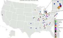 American manufacturers produce approximately 10 million units annually.[4] Notable exceptions were 5.7 million automobiles manufactured in 2009 (due to crisis), and more recently 8.8 million units in 2020 due to the global COVID-19 pandemic.[4][5] Production peaked during the 1970s and early 2000s at 13–15 million units.[6][7][8]