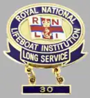 Established in 2020, it is awarded for twenty years service with the RNLI, either as crew or as a support volunteer, and replaces the award of enamel lapel badges. Clasps, attached to the ribbon, are presented to mark each further period of ten years service. Clasps are inscribed 30, 40 50 or 60 Years, as appropriate. By September 2020, a total of 733 medals had been issued, including several with the 60 Year clasp.[13]