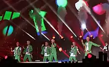 In January 2012, the group starred in the reality program Ta-Dah, It's B.A.P, which aired on SBS MTV.[9] The show focused on how the six members play the role of aliens from a different planet who worked together to debut as B.A.P and invade Earth to help save their dying planet, Planet Mato.[9] On January 25, the group's debut single "Warrior" was released, with MTV Korea describing it as "powerful and charismatic".[10][11] Nancy Lee of Enews World noted that the group had set out to differentiate themselves from the "pretty-boy" male idol archetype prevalent in the K-pop music industry with their "tough, bad boy image".[12] On February 3, 2012, the corresponding EP Warrior entered Billboard's World Albums Chart at #10.[13] In South Korea, Warrior sold over 10,000 copies within just two days of release.[14]