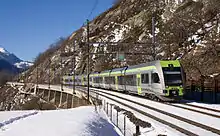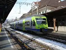 The BLS RABe 525, also known as NINA or Nina, is a Swiss electric multiple unit built by Bombardier Transportation with electrical equipment by Alstom. The train is principally used by the BLS AG on Bern S-Bahn services, although small quantities have been built for other railways. An updated version exists as the BLS RABe 535, also known as Lötschberger, also exists with a revised front end and an interior intended for longer distance services.