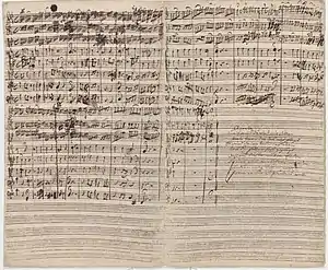 As one of the editors for the Neue Bach-Gesellschaft, Robert L. Marshall was responsible for creating an urtext edition of the cantata for Bärenreiter in 1985. His preparation started in 1972, using the rare opportunity to have the autograph manuscript of Bach's full score available, created by Bach as a "composing score". Marshall attempted to reverse the process, analysing how Bach might have set about composing movements, altering portions if required. For the last chorale, where the strings accompany the chorus and other instruments colla parte, the two last pages of the autograph score reveal the many modifications Bach made.[20][21][22] Throughout the cantata, Bach's use of "word painting" is prevalent, but in the final chorale it is particularly imaginative.[3]