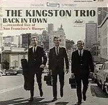 Back in Town is a live album by the American folk music group the Kingston Trio, released in 1964. It reached number 22 on the Billboard Pop Albums chart and is the final principal album recorded by the Trio for Capitol Records. The Trio's seven-year contract with Capitol ended in February 1964 with one album due. Unable to negotiate another contract, the group released this live album and moved to Decca Records.[2]