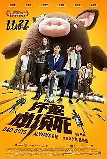Bad Guys Always Die (Chinese: 坏蛋必须死) is a 2015 action comedy film directed by Sun Hao. A China-South Korean co-production, the film was released in China on November 27, 2015 and in South Korea on January 7, 2016.[2][3][4]