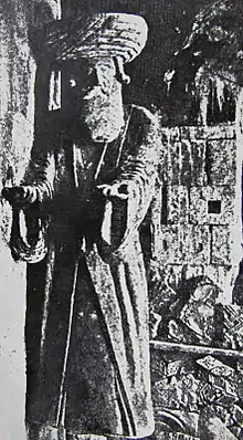 A statue of King Gagik I that originally had him holding a model of the Church of St. Gregory