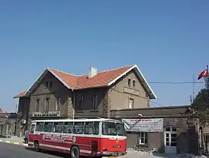 Balıkesir station (Turkish: Balıkesir Garı) is the main railway station in Balıkesir, Turkey. The station was built in 1912 by the Smyrna Cassaba Railway as part of their railway from Manisa to Bandırma. TCDD Taşımacılık operates four daily intercity trains, two of which terminate at Balıkesir.[1][2][3] The stations consists of one side platform and one island platform serving two tracks. A freight yard is adjacent to the platforms, but will be decommissioned and the station ground will be used solely for passenger trains.[4]