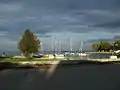In winter, the lake may freeze over for weeks so that skaters and ice boaters take over near the shore of the town.
