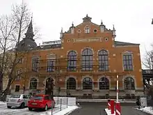 On July 27, 1838, the spirits burner Karl Joseph Watzke acquired the catering business, including the Schank concession. He gave her the name Watzke's garden restaurant with Elbterrasse.[2] The restaurant remained family-owned and was expanded several times. In 1898, a year after Pieschen had been incorporated into Dresden, the old economy was demolished and a ball-house with a large ball hall was built by Gustav Paul Watzke (the grandson of the first Watzke host) First floor. It stands on the Kötzschenbroder Straße 1, which is located in the neighborhood of the village center Altpieschen, but already belongs to Mickten. The house in Neo-Empire style[3] was given the name Watzke's Concert- and Balletablissement. The architect was Benno Hübel; the ceiling painting in the hall was by Emil Schulz. With 770 seats, the building had one of the largest halls in the city of Dresden.[4] After Paul Watzke was drafted into the military in 1914, the house served as a temporary shelter.