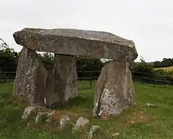 Ballykeel Dolmen is a neolithic tripod portal tomb and a State Care Historic Monument at the foot of the western flank of Slieve Gullion, above a tributary of the Forkhill river, in the Newry, Mourne and Down District Council area, at grid ref: H9950 2132.[1]
