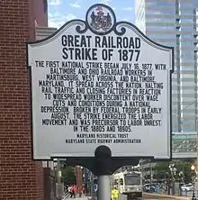 - ↑ Barry, Bill (March 5, 2013). "New historic marker commemorates the 1877 Railroad Strike at Camden Station". Baltimore Heritage. Archived from the original on July 9, 2017. Retrieved September 12, 2016.