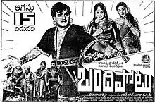 Bandipotu (transl.โBandit) is a 1963 Indian Telugu-language swashbuckler film directed by B. Vittalacharya. It stars N. T. Rama Rao and Krishna Kumari, with music composed by Ghantasala. Tripuraneni Maharadhi wrote the story and dialogues. The film was produced by Sunderlal Nehataa and Doondy under the Raja Lakshmi Productions banner. Vittalacharya shot the film simultaneously in Kannada as Veera Kesari (1963), with Rajkumar.[1] This film had its climax scene in Eastmancolor.