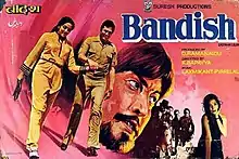 Bandish (aka Bandhish) (lit. 'Restriction') is a 1980 Hindi-language film directed by K. Bapaiah, starring Rajesh Khanna, Hema Malini and Danny Denzongpa.[1][2] The movie is a commercial attempt by D. Rama Naidu, who had earlier produced Prem Nagar with the same lead pair on 1974. The music is by Laxmikant Pyarelal. The film was the 8th highest grosser of the year. The film was appreciated for its colorful locations and sets, and for its melodious songs and unique story. The film was a remake of the Telugu film Chilipi Krishnudu.