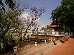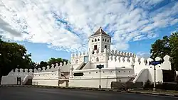 Bang Lamphu became a community prior to the Rattanakosin period. It was the residence of royalty, courtiers, vassals[4] and citizens of many ethnic groups, including Thai, Chinese, Mon and Muslims who settled in the vicinity.[5][6] Once the Khlong Rop Krung canal was excavated, a pier was established at Bang Lamphu[7] by which goods such as vegetables and fruits could be transported from the Thonburi side. Bang Lamphu also became a major market for overland trade via the Khaosan Road[8] and a number of other roads.