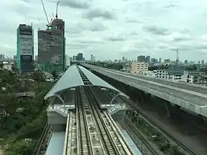 Bang Son station (Thai: สถานีบางซ่อน) is a railway station located in Bang Sue subdistrict, Bang Sue district, Bangkok. It is located 12.907 km (8.0 mi) from Bangkok Railway Station. Passengers can transfer to the Bang Son MRT station. Bang Son station serves two systems operated by the State Railway of Thailand, the Southern Line at the at-grade railway halt and the Bang Son–Taling Chan SRT Light Red Line at the elevated station.
