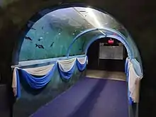 The station features a public aquarium called ′Aquatic Kingdom′ which has been functional since 1 July 2021.[17][18] It includes a 12-foot-long tunnel aquarium,[19] which is India's first.[20][21] It is developed in collaboration with HNI Aquatic Kingdom.[19]