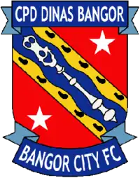 Bangor City Football Club (Welsh: Clwb Pêl-droed Dinas Bangor) is a Welsh inactive football club from the City of Bangor, Gwynedd. They started the 2021–22 season in the Cymru North the second level of the Welsh football league system, but on 30 November were suspended from any football activity due to non-payment of wages.[2] On 18 February 2022 the club announced they had withdrawn from the league[3] and the Football Association of Wales confirmed the club's results from the league that season has been expunged.[4] The club subsequently failed to apply for tier 2 or tier 3 licences, leaving them unable to play in any Football Association of Wales league for the 2022–23 season.