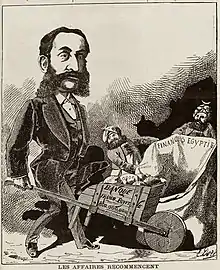 The Banque franco-égyptienne (BFE, “French-Egyptian Bank”) was created in 1870 on the initiative of financier Louis-Raphaël Bischoffsheim in the context of financial stress of the Khedivate of Egypt, which had close relations with France at the time.[1] Khedive Isma'il Pasha contributed half of the initial capital.[2] In the late 1870s, Egypt’s growing financial distress led the bank to seek additional capital from other sources including the Paris-based Crédit Industriel et Commercial, Ukraine-born banker Jacques de Gunzbourg, and the Hentsch & Lütscher, Goldschmidt, and Königswarter family banks.