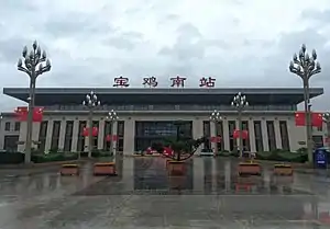The Baoji South railway station is a railway station of Xi'an–Baoji high-speed railway and Baoji-Lanzhou high-speed railway that located in Baoji, Shaanxi, China.